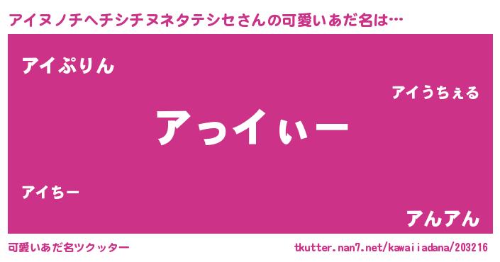 | 欧米人風あだ名 | 『ウサインアイヌノチヘチシチヌネタテシセ』 |