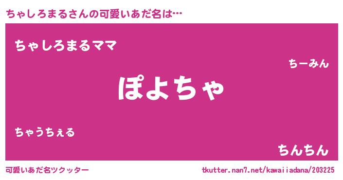 | ヘコむあだ名 | 『ちゃしろまる(笑)』『ちゃふぇ~』 |