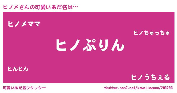 | 意味不明あだ名 | 『しいたけ科ヒノメ属』『永久保存ヒノメ』 |