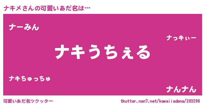 | ヒーロー風カッコイイあだ名 | 『超時空戦士ナキメ』『スーパーナキメ』 |