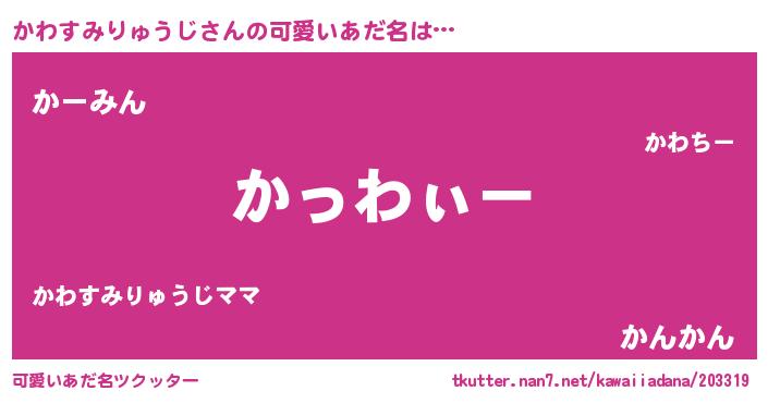 | 男性向けラノベタイトル風あだ名 | 『かわすみりゅうじの嫁は女の子じゃないと思った?』 |