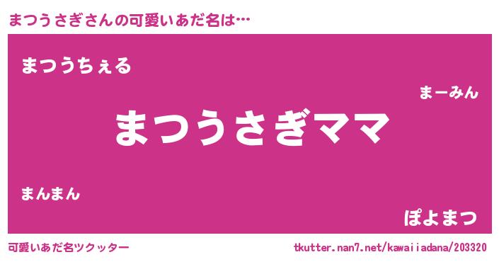 | 意味不明あだ名 | 『永久保存まつうさぎ』『自称まつうさぎ』 |
