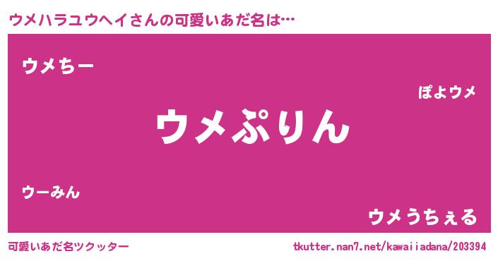 | 意味不明あだ名 | 『めかぶ科ウメハラユウヘイ属』 |