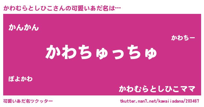 | ヘコむあだ名 | 『かわふぇ~』『かわむらとしひこ(笑)』 |