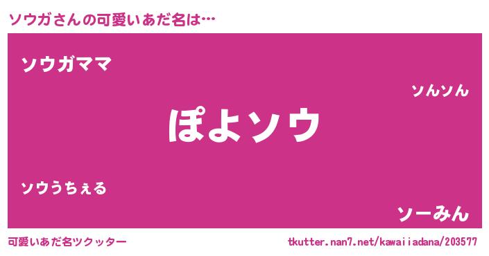 | ポケモン風あだ名 | 『ソーウイ』『ソウゴンZ』『ゼニソウ』 |