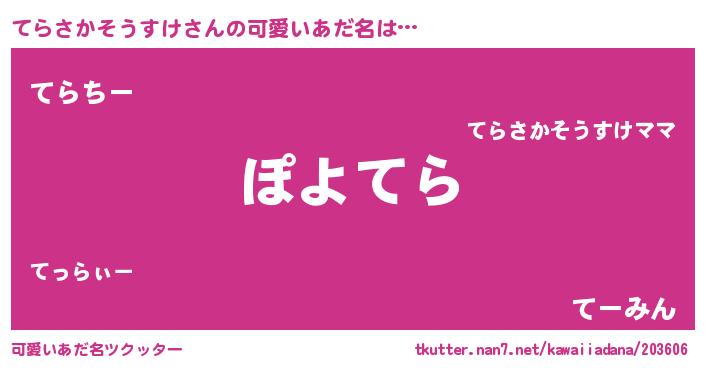 | 意味不明あだ名 | 『住所不定無職てらさかそうすけ(7歳)』 |