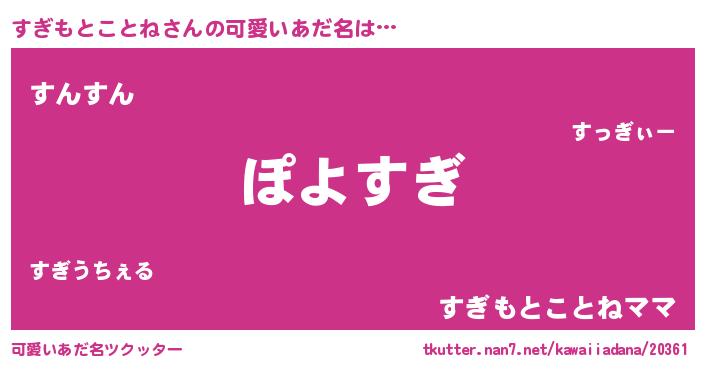 | 意味不明あだ名 | 『住所不定無職すぎもとことね(5歳)』 |