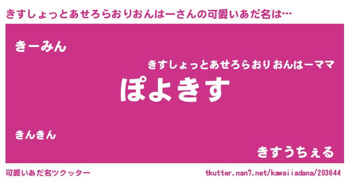 | 意味不明あだ名 | 『住所不定無職きすしょっとあせろらおりおんはー(86歳)』 |