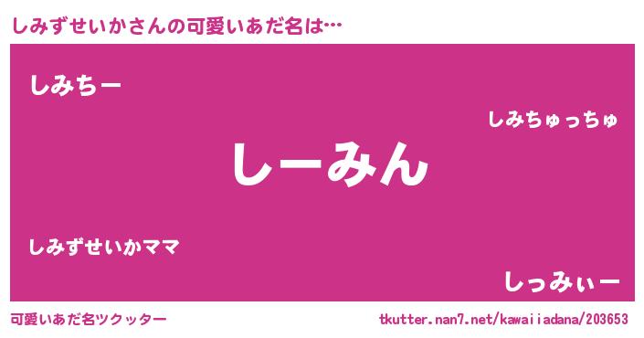 | 意味不明あだ名 | 『しみずせいかフォーエバー』 |