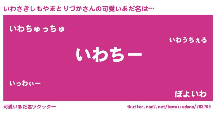 | 男性向けラノベタイトル風あだ名 | 『いわさきしもやまとりづかに滅ぼされるだけの簡単なお仕事です』 |