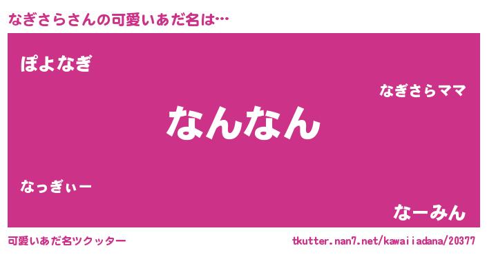 | 意味不明あだ名 | 『ペロリンなぎさら』『永久保存なぎさら』 |