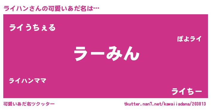 | ヘコむあだ名 | 『豆乳』『ライハン(笑)』『ライを』 |
