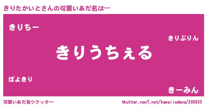 | 恥ずかしいあだ名 | 『キリタカイトデラックス』『きりっちょ』 |
