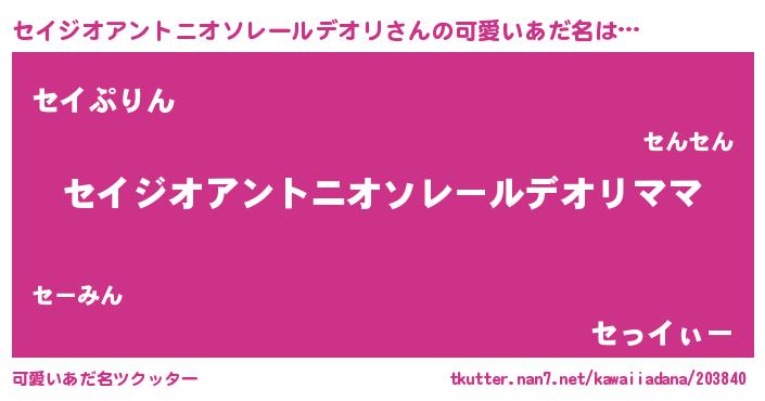 | 意味不明あだ名 | 『永久保存セイジオアントニオソレールデオリ』 |