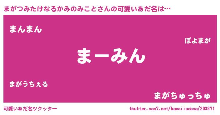 | ヒーロー風カッコイイあだ名 | 『スーパーマガツミタケナルカミノミコト』 |