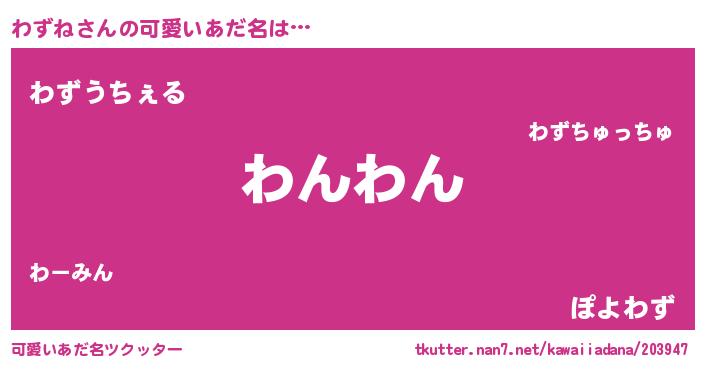 | ヘコむあだ名 | 『わずにゅー』『わずね(小並感)』 |
