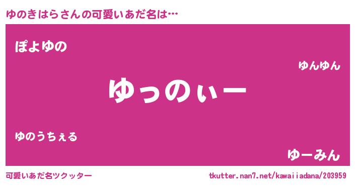 | ヘコむあだ名 | 『ゆのっ子』『ゆのっふぃ~』 |