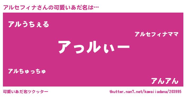 | ポケモン風あだ名 | 『ヒアルセフィナ』『アルセウス』 |