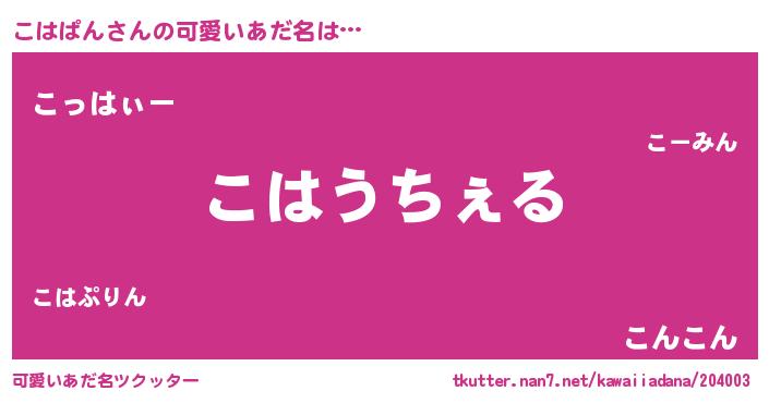| 意味不明あだ名 | 『自称こはぱん』『ペロリンこはぱん』 |