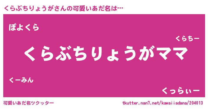 | 意味不明あだ名 | 『永久保存くらぶちりょうが』 |
