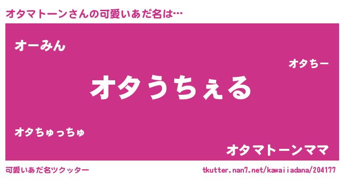 | 男性向けラノベタイトル風あだ名 | 『Re:オタマトーンから始める異世界生活』 |