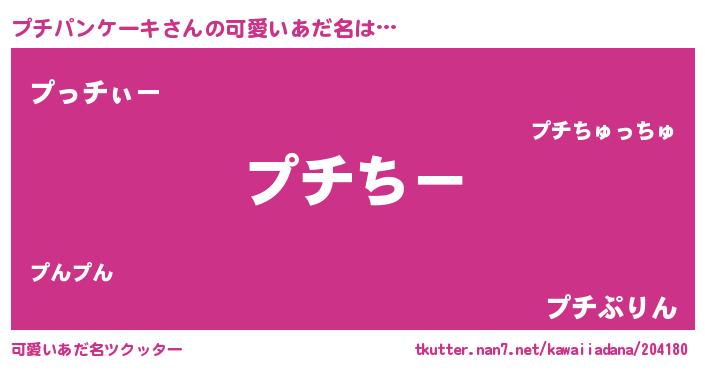 | 男性向けラノベタイトル風あだ名 | 『プチパンケーキに滅ぼされるだけの簡単なお仕事です』 |