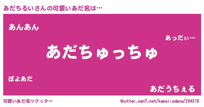| ヘコむあだ名 | 『あだっふぃ~』『あだっ子』『豆乳』 |