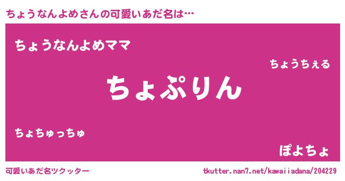 | 料理風あだ名 | 『ちょうなんよめごはん』 |