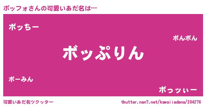 | 男性向けラノベタイトル風あだ名 | 『ボッフォ~年齢イコール彼女いない歴の魔法使い~』 |