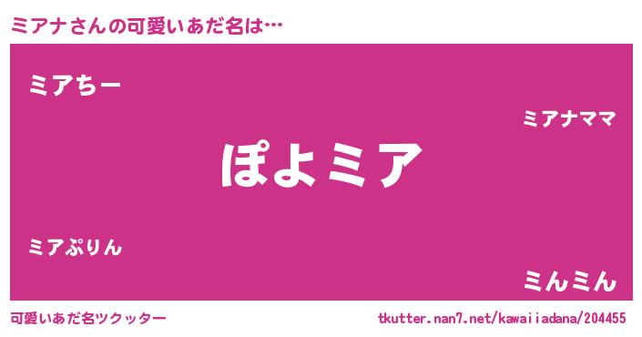 | ポケモン風あだ名 | 『ミーアイ』『ミアナダネ』 |