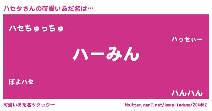 | ヒーロー風カッコイイあだ名 | 『愛の使者ハセタ』『スーパーハセタ』 |