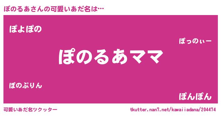 | ヘコむあだ名 | 『ぽのるあ(苦笑)』『ぽのにゅー』 |