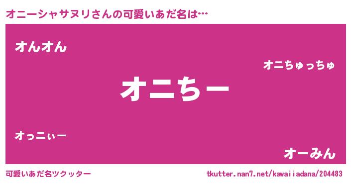 | 男性向けラノベタイトル風あだ名 | 『やはりオニーシャサヌリの青春ラブコメはまちがっている 』 |
