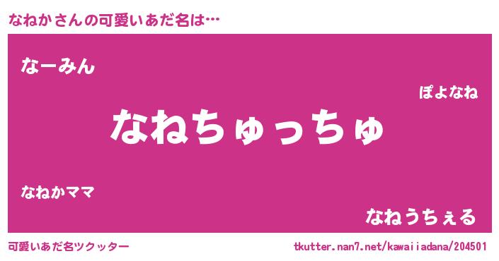 | 女子向けラノベタイトル風あだ名 | 『なねか恋絵巻』『横柄なねかと宰相陛下』 |