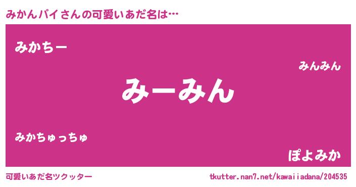 | 男性向けラノベタイトル風あだ名 | 『緋弾のミカンパイ』『みかんパイの憂鬱』 |