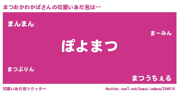 | 恥ずかしいあだ名 | 『プリティーまつおかわかば』『まつちん』 |