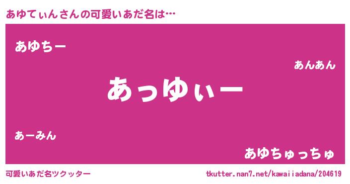 | 男性向けラノベタイトル風あだ名 | 『あゆてぃんの嫁は女の子じゃないと思った?』 |