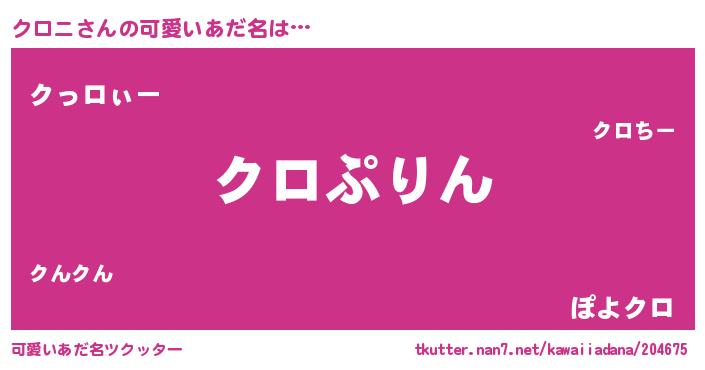| 男性向けラノベタイトル風あだ名 | 『転生したらクロニだった件』 |