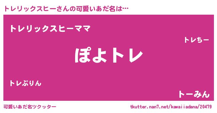 | 男性向けラノベタイトル風あだ名 | 『この素晴らしい世界にトレリックスヒーを!』 |