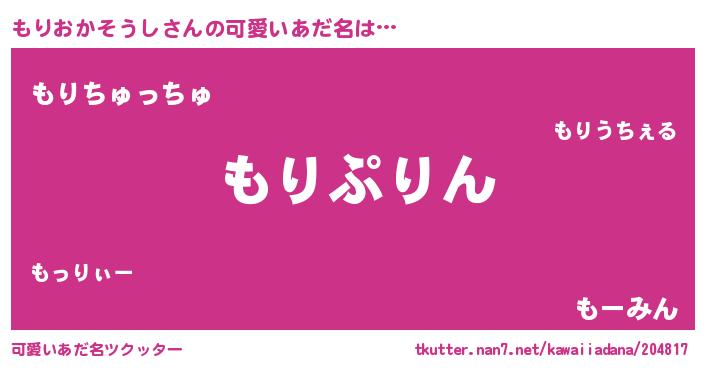 | ヘコむあだ名 | 『もりぷりん』『もりおかそうし(小並感)』 |