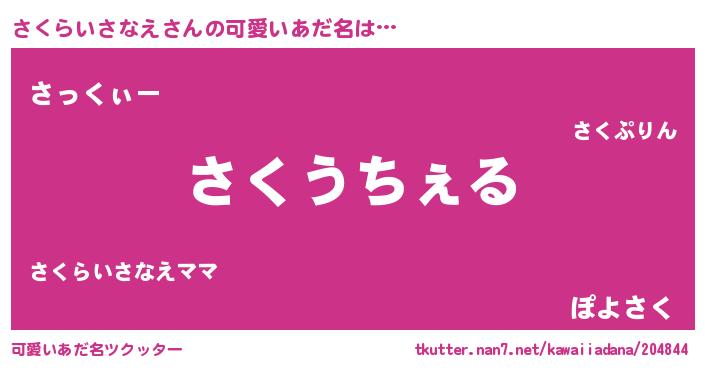 | ヘコむあだ名 | 『さくお』『さくらいさなえ(苦笑)』 |