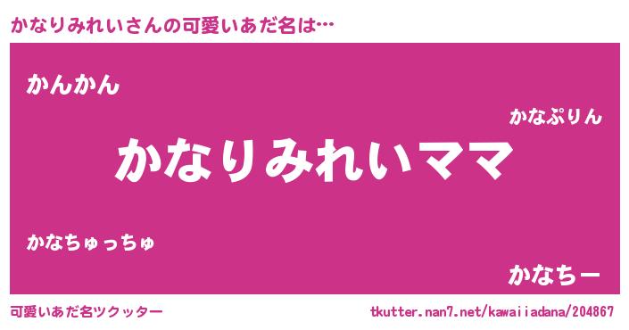 | ヘコむあだ名 | 『かなりみれい(爆)』『かなもー』 |