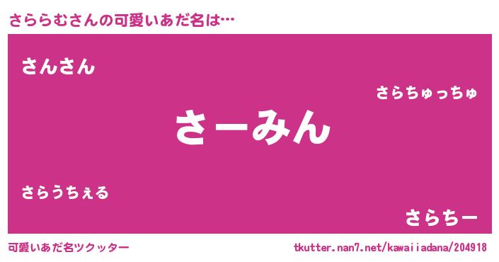 | 恥ずかしいあだ名 | 『プリティーさららむ』『さらっちょ』 |