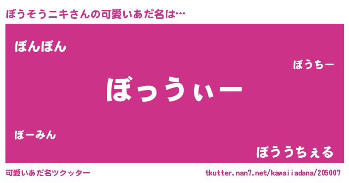 | ヘコむあだ名 | 『ぼうぷりん』『ぼうにゅー』 |