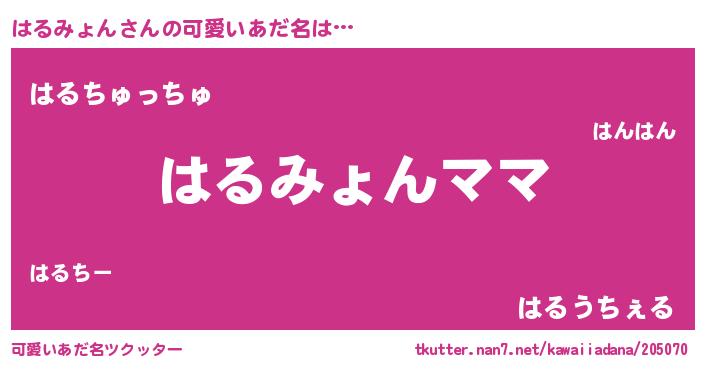 | 意味不明あだ名 | 『永久保存はるみょん』『自称はるみょん』 |