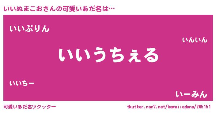 | 男性向けラノベタイトル風あだ名 | 『Re:いいぬまこおから始める異世界生活』 |