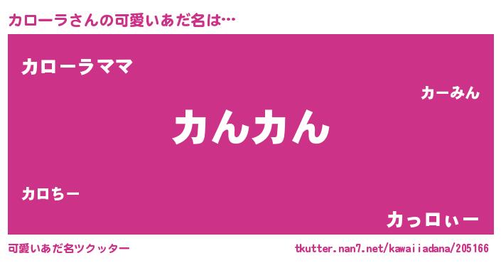 | 意味不明あだ名 | 『ペロリンカローラ』『永久保存カローラ』 |