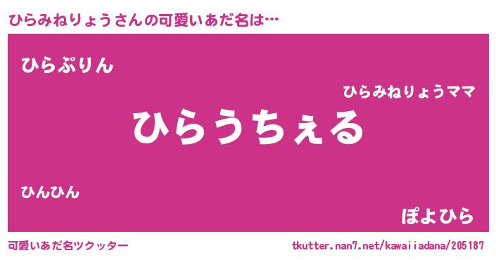 | 料理風あだ名 | 『ヘルシー!ひらみねりょうのピリ辛酒蒸し!』 |