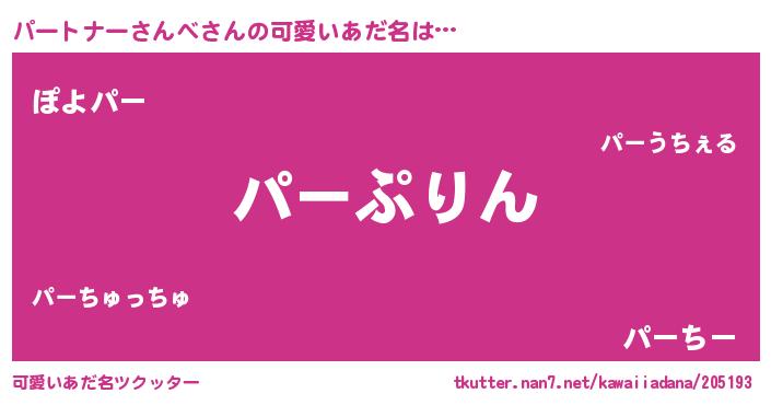 | 男性向けラノベタイトル風あだ名 | 『パートナーさんべ~年齢イコール彼女いない歴の魔法使い~』 |