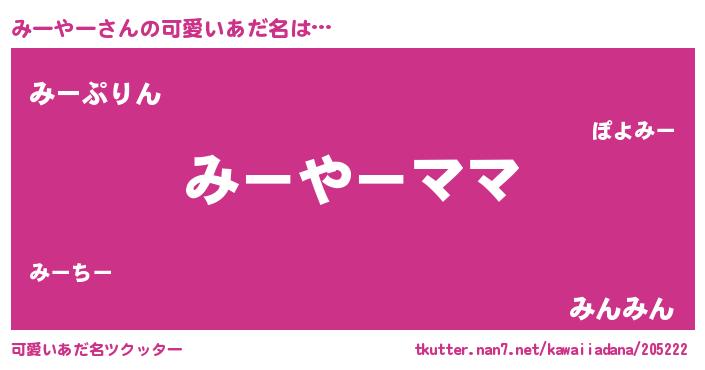 | 意味不明あだ名 | 『永久保存みーやー』『ペロリンみーやー』 |